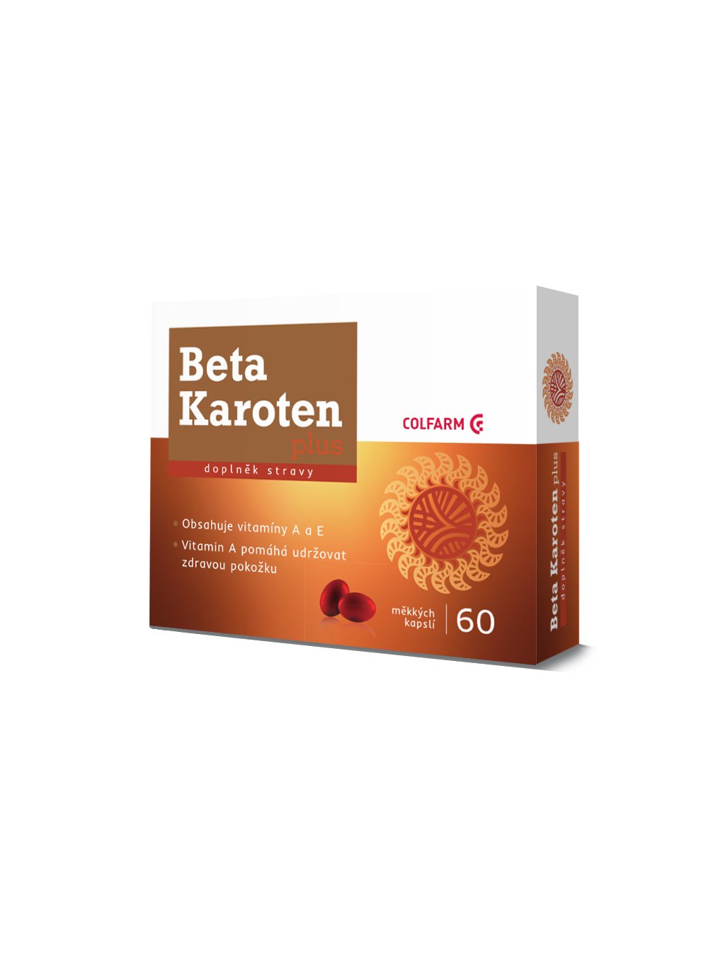 COLFARM Beta Karoten Plus obsahuje vysokou dávku betakarotenu obohacenou vitaminem E. Beta karoten je prekurzorem vitaminu A. Organismus přeměňuje betakaroten na vitamin A přesně podle aktuální potřeby, nehrozí tedy předávkování jako u samotného vitaminu A. Vitamin A je potřebný pro udržení normálního stavu pokožky, sliznic a dobrého zraku. Přispívá také ke zdravé imunitě. Vitamin E pomáhá chránit buňky před oxidativním stresem.