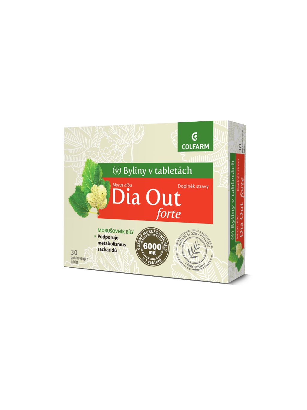Doplněk stravy COLFARM Dia Out forte obsahuje výtažek z listů morušovníku bílého, který příznivě ovlivňuje metabolismus glukózy. Morušovník bílý je středně velký, opadavý strom pocházející z Číny. Přípravek je určen pro dospělé.