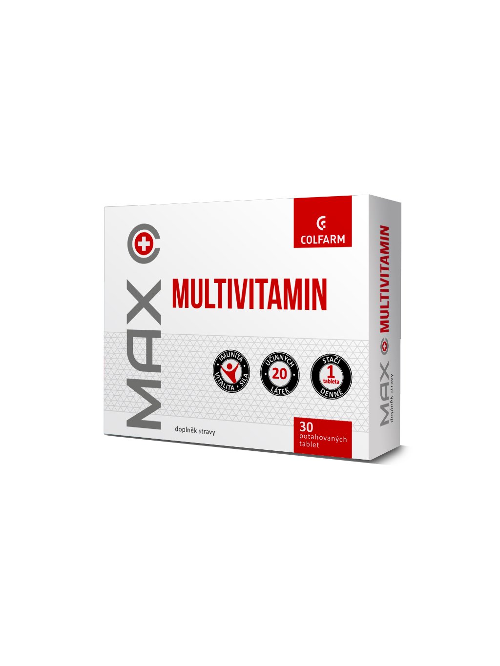 COLFARM MAX Multivitamin obsahuje vyváženou kombinaci vitaminů a minerálů se ženšenem a extraktem z kořene z maky pro tělesné a duševní zdraví. Účinné látky podporují Vaši imunitu a vitalitu. Vitaminy skupiny B pomáhají snižovat míru únavy a vyčerpání a příznivě ovlivňují energetický metabolismus. Zdravou imunitu podporují vitaminy A, C, D, B6 spolu se zinkem a selenem. Ženšen přispívá k odolnosti organismu vůči stresu.