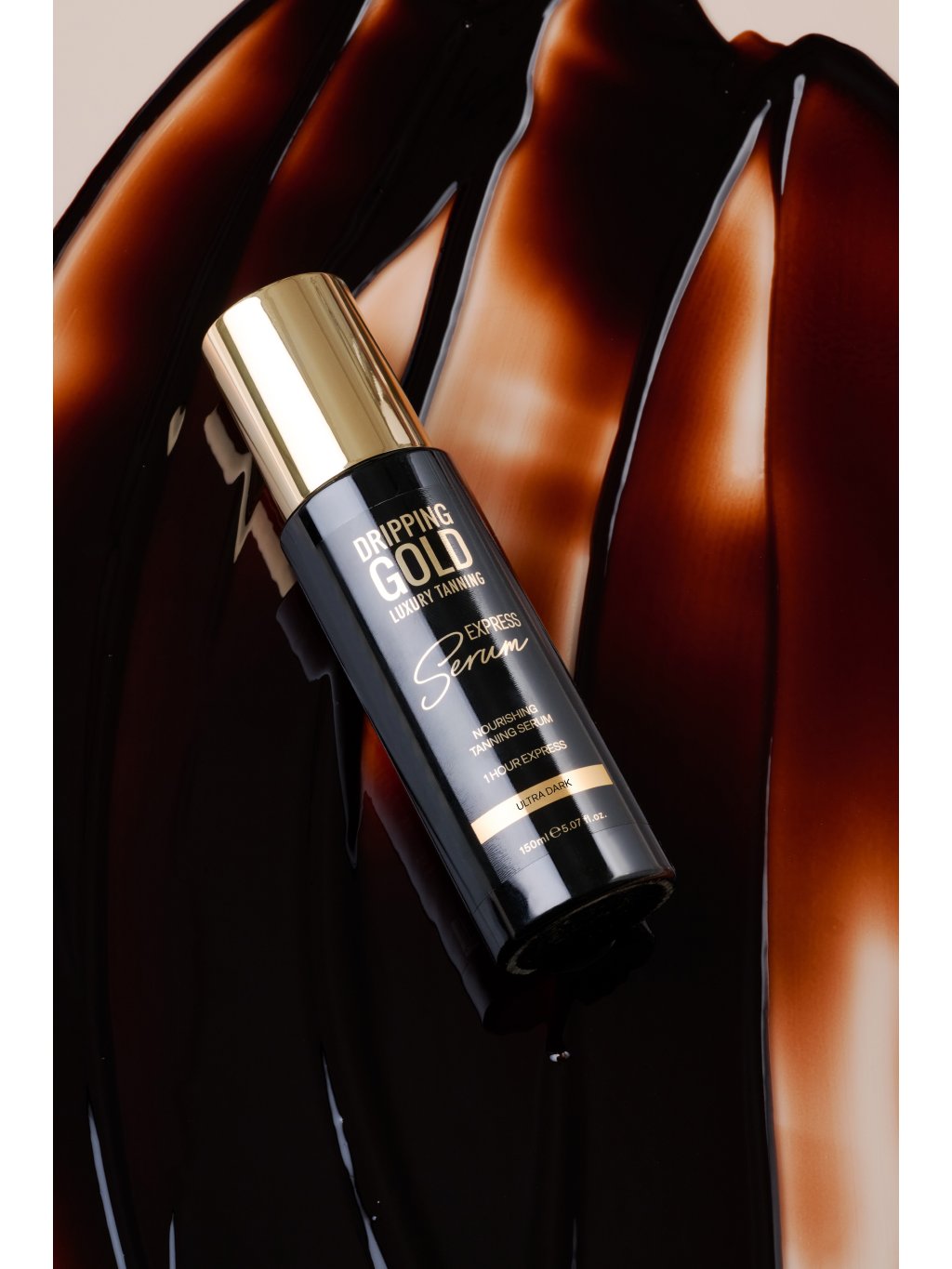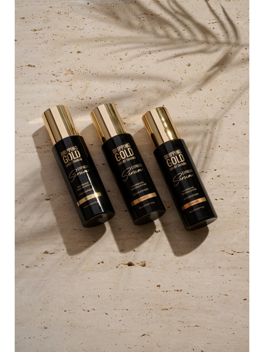 Dripping Gold přichází s revoluční variací na své best-seller samoopalovací sérum, které potěší všechny netrpělivé. Express Tanning Serum působí – a opaluje – jak jinak než expresně, takže si z luxusního celotělového bronzového nádechu můžete těžit už hodinu po nanesení.