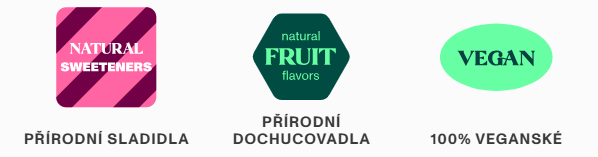 (3,5 g): sladidlo (glukózový sirup, cukr), voda, želírovací látka (pektin), maltodextrin, kyselina (kyselina citrónová ), kyselina askorbová (vitamin C), citrát hořečnatý, regulátor kyselosti (citrát sodný), DL-a tokoferylacetát (vitamin E), aroma (aroma červeného ovoce), citrát zinečnatý, potahová látka [rostlinný olej (kokosový olej) a karnaubský vosk] D-pantotenát vápenatý (vitamin B5), acetát, D-Biotin, pyridoxin HCL (vitamin B6), ergokalciferol (vitamin D2), barvivo (antokyaniny), kyanokobalamin (vitamin B12), kyselina listová, seleničitan sodný, jód draselný a inositol.